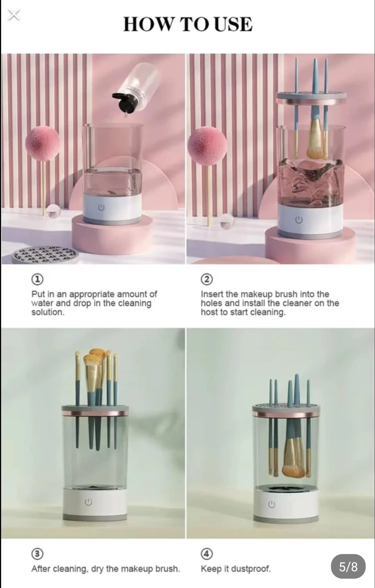 Aparat de Curatat pensule de machiaj, Spala mai multe pensule simultan, Usuca, Rapid, Ultrasonic, Portabil, 260 Grame, 7000 RPM, 8W, Alimentare USB, Uz casnic, Ideal pentru make-up artisti, Alb